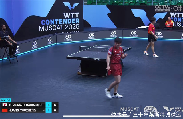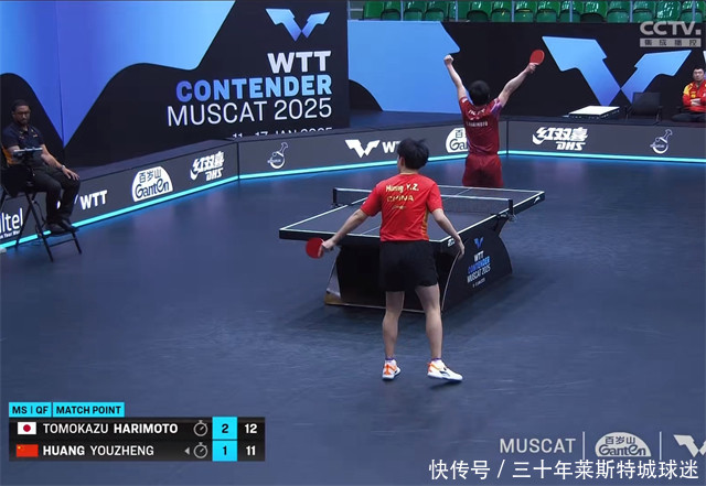 WTT旧例挑战跑马斯喀特站,男单1/4决赛,国乒队员黄友政1-3不敌张本智和,四局比分为11-13、11-8、8-11、11-13。